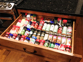 Cabinet accessories are a must for some people, but not others. We can provide information on different types of accessories if you are unsure of what is out there. If we know what types of accessories you are wanting, we can incorporate those into the drawing. A few of the most popular cabinet accessories are trash drawers, pullouts for pots/pan, spice drawers, and silverware drawers.